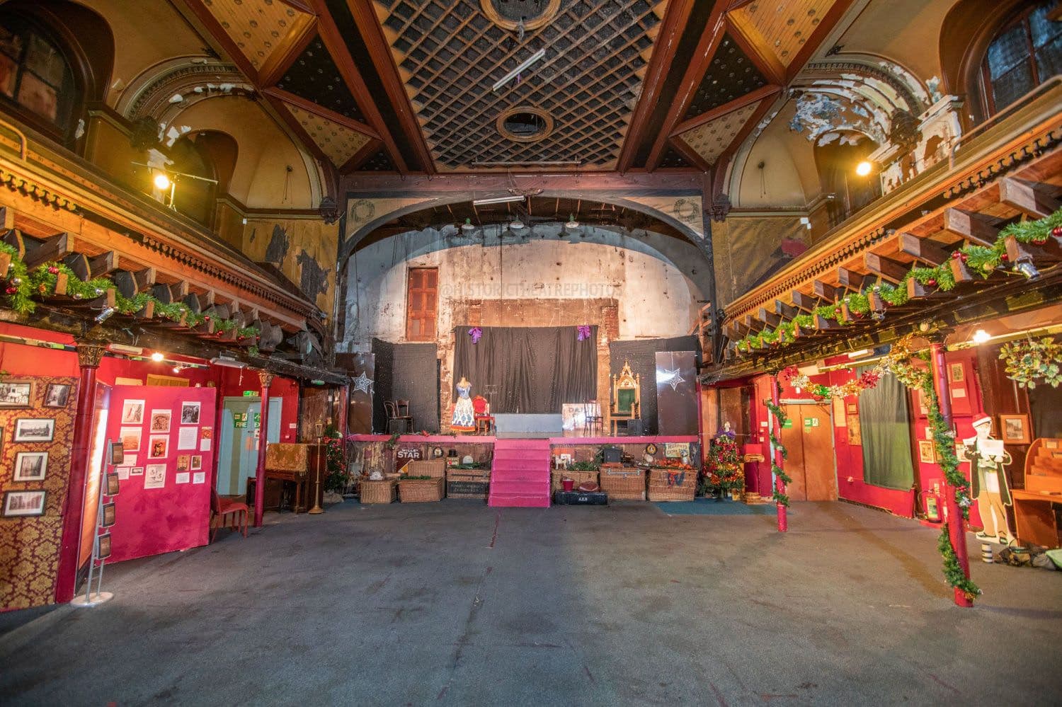 Situado en la histórica Trongate de Glasgow, este music hall comenzó su andadura en 1857, en una época en la que la población de Glasgow estaba en auge y sus calles estaban abarrotadas de trabajadores desesperados por entretenerse. Durante las épocas victoriana y eduardiana, los music halls eran una forma popular de entretenimiento entre las clases trabajadoras. Al principio, eran trastiendas detrás de los pubs, aunque éste es diferente, ya que está en el piso de arriba. Habría albergado a más de 1.500 visitantes, deseosos de divertirse y desahogarse mientras veían los números, que iban desde cantantes, bailarines y cómicos hasta acróbatas, animales y novedades. En 1906, un excéntrico hombre del espectáculo, A.E. Pickard, añadió un carnaval, un espectáculo de fenómenos, un taller de cera y un zoo a las diversiones, donde los visitantes podían ver al Oso del Himalaya en el sótano o a la Dama Tatuada en el ático.
